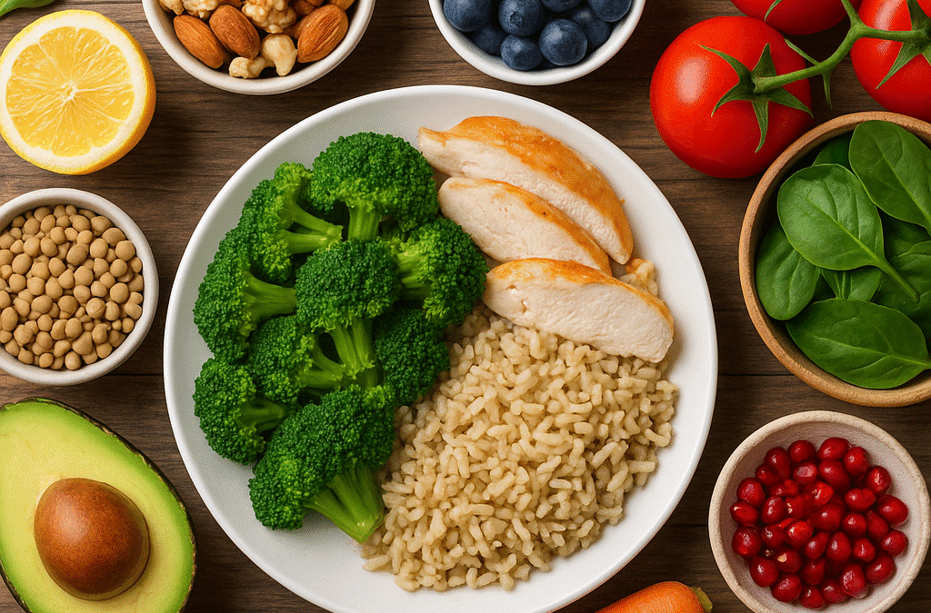 - Warzywa: minimum 4–5 porcji dziennie (np. szpinak, brokuły, papryka);